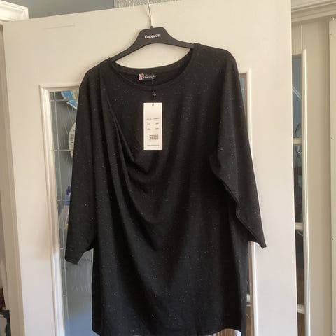Selger en langermet tynn topp i svart fea merket Lifetime. Størrelse medium.