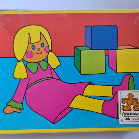 Puslespill i tre til barn. 20 brikker. Festlig og fargerikt motiv.