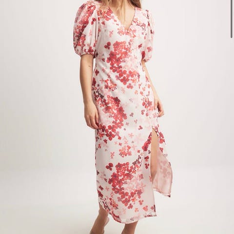 Mønstrete rød og hvit kjole fra Other Stories kjøpt for 1.100 kr. Kun brukt 1 gang. Ingen skader. Perfekte sommerkjole, festkjole eller bryllupsgjest-kjole. Passer en S eller XS.