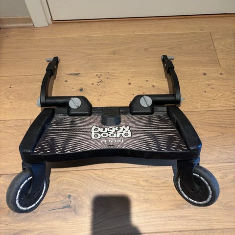 Buggy Board er et universielt ståbrett som kan monteres til nesten enhver barnevogn eller trille.