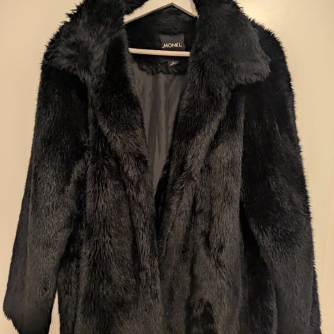 Myk og god fake pels jakke / cape fra Floyd! Kun brukt en gang, ingen flekker el. Har ikke vært vasket.