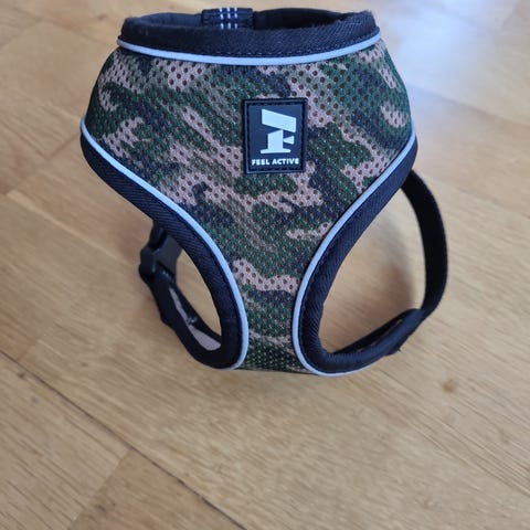 Ubrukt hundesele kjøpt på Musti for 319kr. Denne ble kjøpt før vi hentet valpen. Passer ikke hunden vår og blir derfor solgt videre. Selen er i str M, som passer en hund med 18-32 cm i halsen og 37-51 cm rundt brystet.