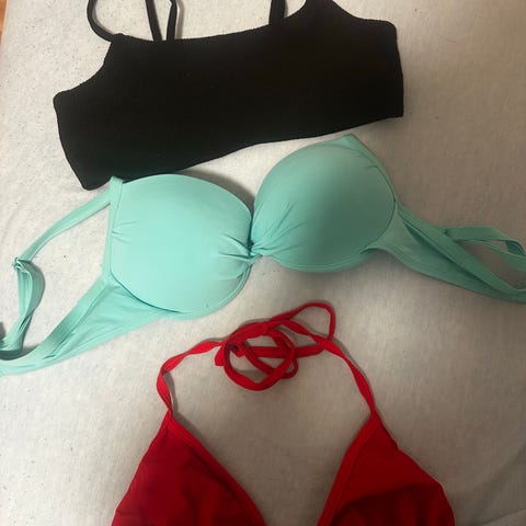 Jeg kjøpte bikini fra Doria swimwear på ferie i Spania for 2 år siden. Den er brukt kun noen ganger, og den har desverre blit for liten, og derfor må selges. Bikini BH har fin push up effekt. Størrelsen er S, men det er en spansk merke, og er liten i størrelsen. Den er mer XS en S. Jeg bruker S nå, og bikinien passer ikke meg.
