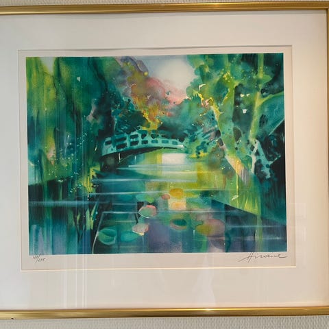 Kjøpt på kunstauksjon og innrammet på rammeverksted.