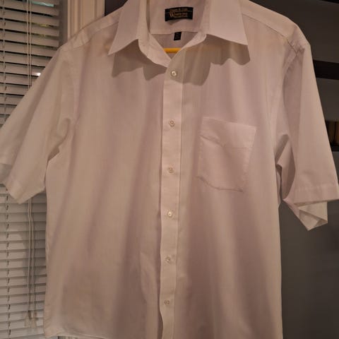 Tynn kortermet dresskjorte i størrelse large, slimfit passform. Brukt et par ganger, ingen slitasje.