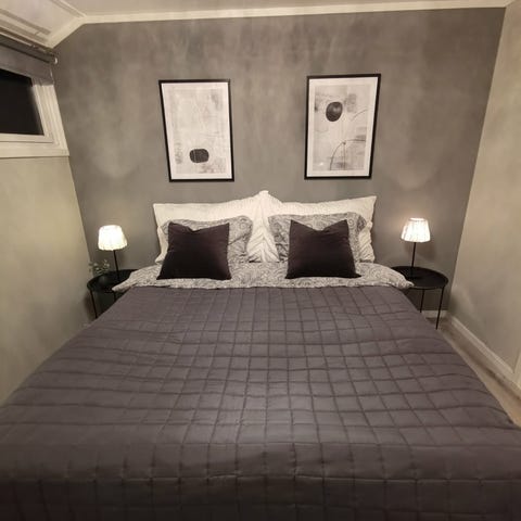 Tips/råd: Med en ensfarget base er det lett å ta den litt mer ut med mønster på f.eks. tepper og gardiner.