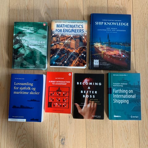 Diverse bøker til Bachelor Nautikk og Master i operativ maritim ledelse selges.