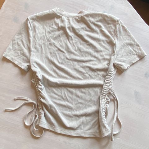 Mørkeblå t-skjorte i størrelse XS-S. T-skjorten har ei stripe som går loddrett (nedover). Den har frynser nederst på armene og nederst på t-skjorten. T-skjorten er brukt et par ganger, men pent brukt.