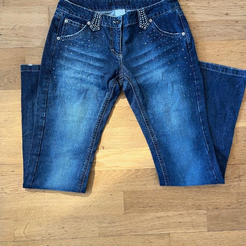 I lyseblå stretch denim, med lavt liv. Ettersittende / skinny passform.