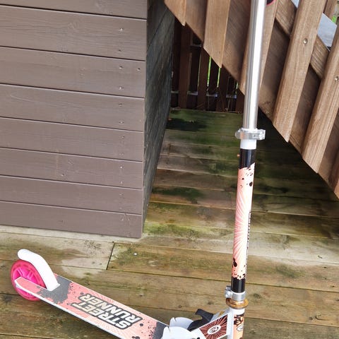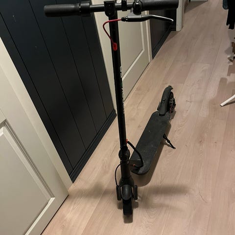 Hjulene er byttet og sparkesykkelen er lite brukt etter det.