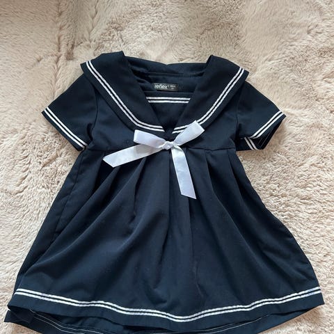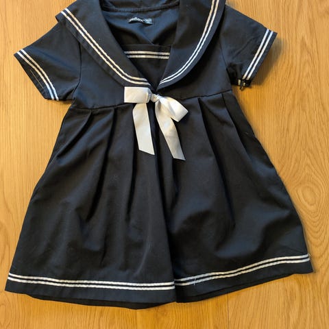 Marineblå med små søte lommer.Brukt 1 gang. Fremstår som ny.