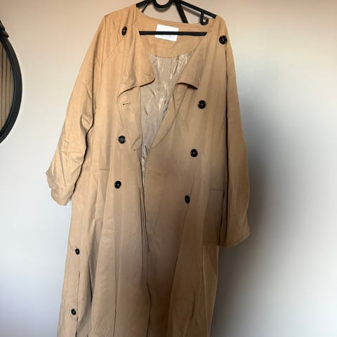Str. 38. Kåpen faller fint, da den er litt tung i stoffet, skulderputer.