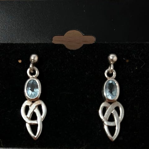 Det keltiske treet er en representasjon av koblingen mellom himmel og jord, sinn og kropp og livets uendelige syklus. Sett med noen øredobber. Øredobber av riktig kvalitet kjøpt i en smykkebutikk. Ingen feil eller merker. Har hatt dem i mange år, men bruker de ikke så mye lenger.