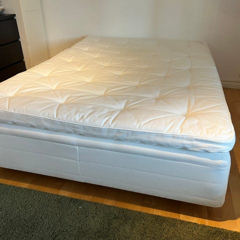 Følger med to overmadrasser. Den øverste er relativt ny og av merket Wonderland.