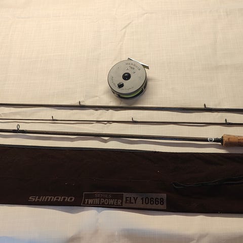Enhånds fluestang. 2 deler, hver 132 cm.