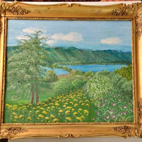 Pent innrammet i en eldre treramme.