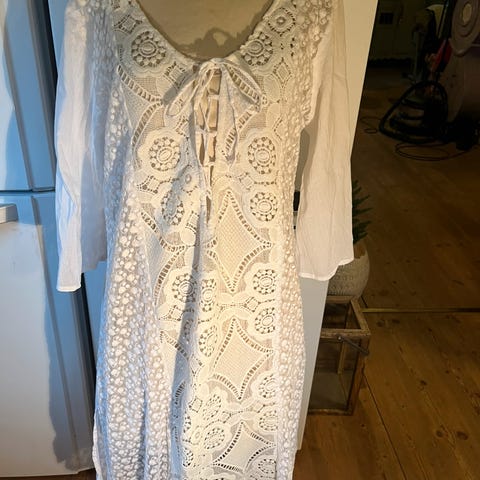 Nydelig lin kjole fra malene birger med heklet overstykke.