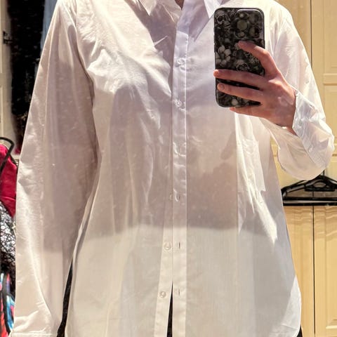 Selger en pent brukt bluse fra Mango i skjorte-stil. Blusen er lett i stoffet. Jeg er 175cm høy for referanse.