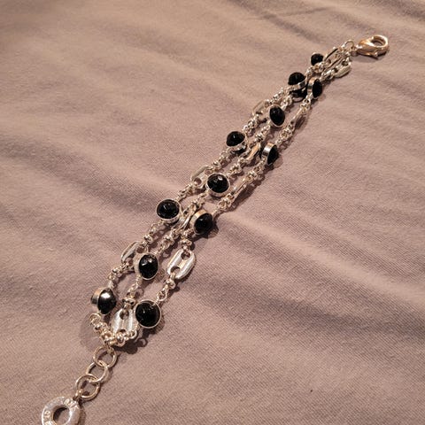🎨 Farge: Gullfarget metall med mørke steiner