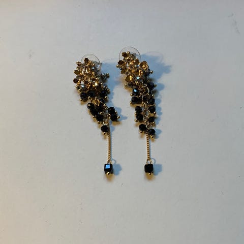 Hengende øredobber med mørke, fasetterte steiner/perler. Klassisk og tidløst design som passer både til hverdags og fest.