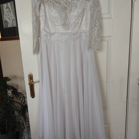 Nydelig brudekjole selges! Jeg har selv kjøpt den brukt, men endte opp med en annen ☺️ jeg selger den billig, da tidligere eier ikke har renset den. Den har to løse tråder (se bilde) men disse kan fint festes. Jeg la ikke merke til det selv når jeg kjøpte den ☺️ kom gjerne for en titt 🌸