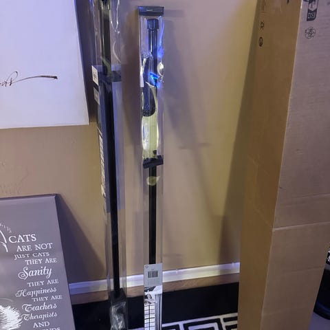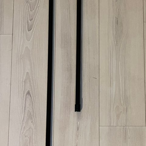 2 stk sorte Kirsch gardinstenger minimum lengde ca 205cm maks lengde ca 390cm. Men kan selvfølgelig sages endda kortere...