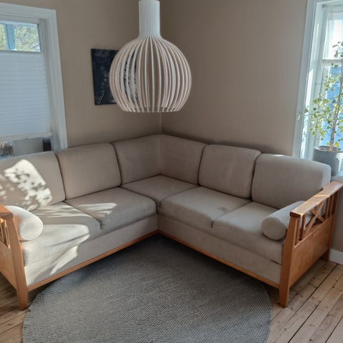 Møbelsnekret svensk tidløs sofa, ingen maken!! 100 % ekte ull. Noe skader å slitasje. Mangler en bokhylle, Må fikses litt på..Pris kan diskuteres