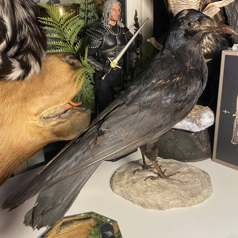Én rot med tre utstoppede fugler selge:. 2 nøtteskriker + en liten gul rovfugl. Må hentes.