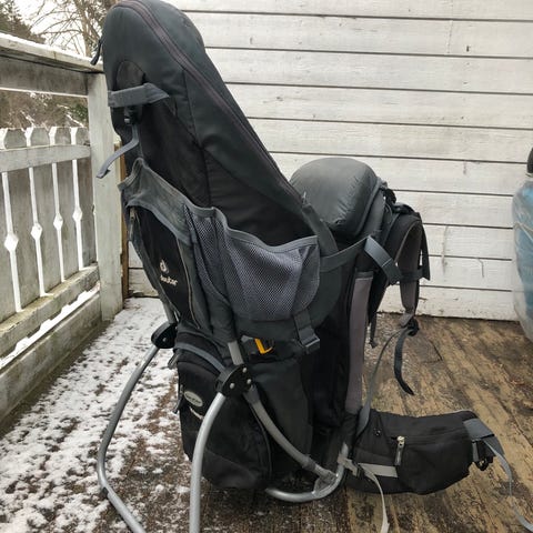 Støtteben for bæremeisen når den står på bakken. Gjør det enkelt å sette inn og ta barnet ut av bæremeisen.