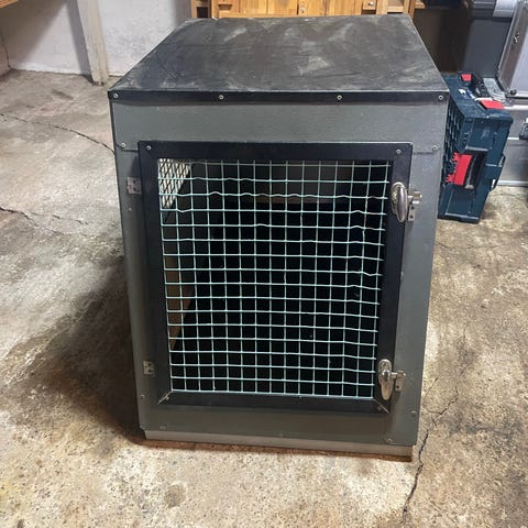 Bærehåndtak til å bære hundeburet i både når det er sammenslått og oppslått.