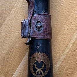 Denne må kjøpes som den er, det vil si at jeg får ikke dratt ut sverdet fra hylsteret da den kan virke som den står i klemme. Flott gjenstand likevel. Selger et unikt og dekorativt afrikansk sverd eller kniv, håndlaget og kjøpt i Afrika på 1970-tallet. Sliren er laget av ekte dyrisk hud eller skinn, grovt sydd for hånd, og selve våpenet er trolig smidd for hånd i tradisjonell stil. Dette er et sjeldent og autentisk samlerobjekt med historie.