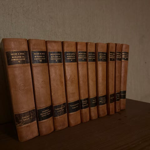 Innbundet med omslag, som er litt frynset og revnet, se bilder