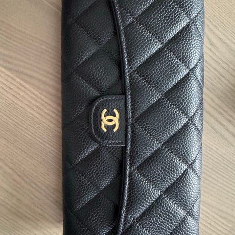 Chanel classic wallet i farge sort. Med sølv detaljer. Medfølger boks, autentisitetskort.