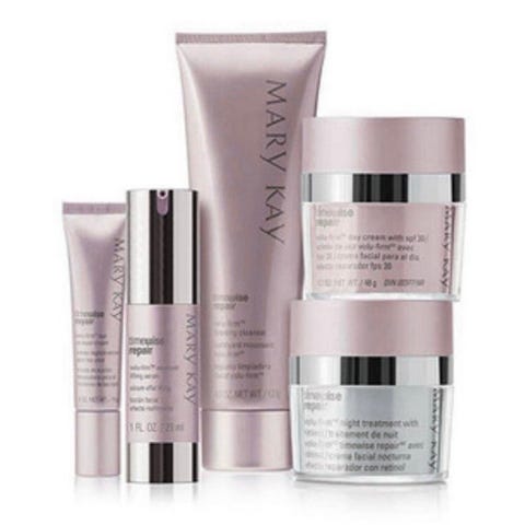 TimeWise Repair® Volu-Firm® Set inneholder fem hudpleieprodukter som motvirker tydelige aldringstegn ved hjelp av patenterte Volu-Firm® Complex, en kombinasjon av ingredienser som blant annet stimulerer produksjonen av hyaluronsyre og motvirker tydelige aldringstegn. Volu-Firm® Complex finnes i samtlige produkter i TimeWise Repair®-serien.