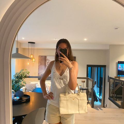 Vintage veske hvit med gull hardware, strap