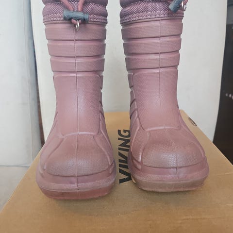 Pent brukte vinterstøvler fra Viking i str. 26 selges. De er rosa og har varmt og godt fór.