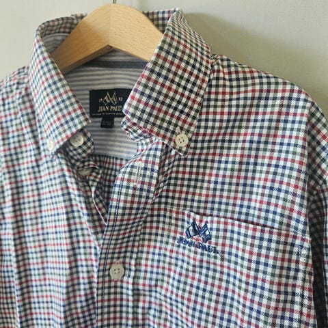 Kortermet Jean Paul skjorte selges rimelig. Er i str 164. Den er kun brukt et fåtall ganger, så hel og pen.