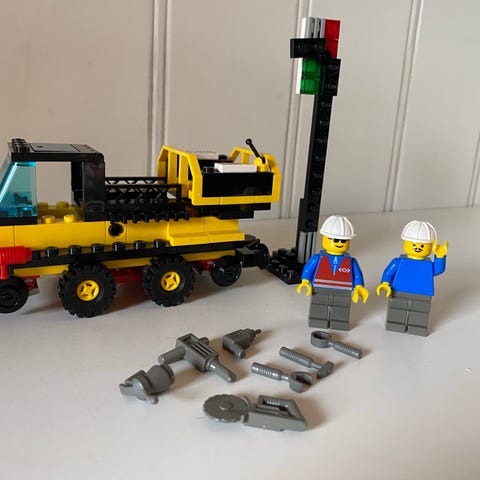 Gammel technic towtruck selges. Den er lekt med, og bygget om til alternative modeller noen ganger. Stått som Towtruck siden midt på 90-tallet. Stått noen år på utstilling og lenge pakket ned i støvtett boks. Den er noe støvete.