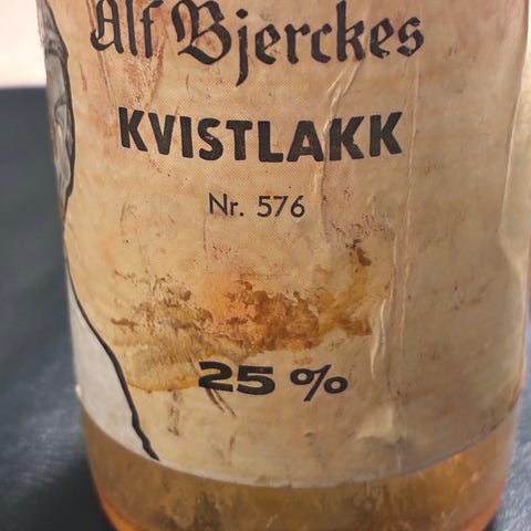 Denne flasken med kvistlakk dukket opp i forbindelse med rydding da jeg flyttet i vinter. Den har ikke vært åpnet Husket at det var noen på Finn som etterlyste kvistlakk her en en gang