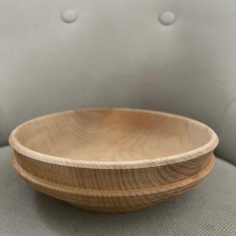 Pen bolle i morelltre med litt dekor. Diameter topp/sokkel: 17,7cm/6,8cm. Høyde ca 7 cm. Overflatebehandlet med bivoks. Kan sendes mot fraktkostnader.