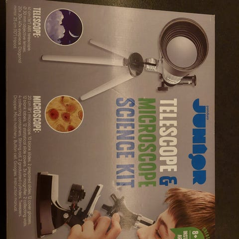Teleskop for barn, kan stå på bord eller festes på stativ.