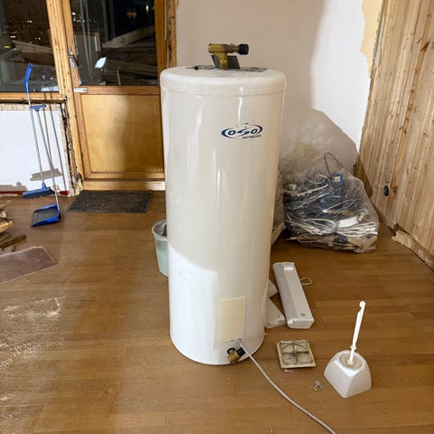Usikker på alder men kan vell være omtrent 10 år fungerer fint ble byttet ut pg av oppusing. Trykkventil er kanskje defekt men lett å bytte. merken på brederen kan vaskes bort.