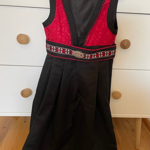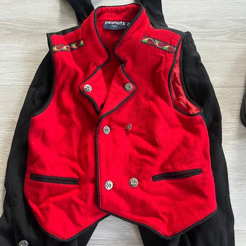 Festdrakt rød og mørk i str 4 år. Merke vetlevesla. Ull.