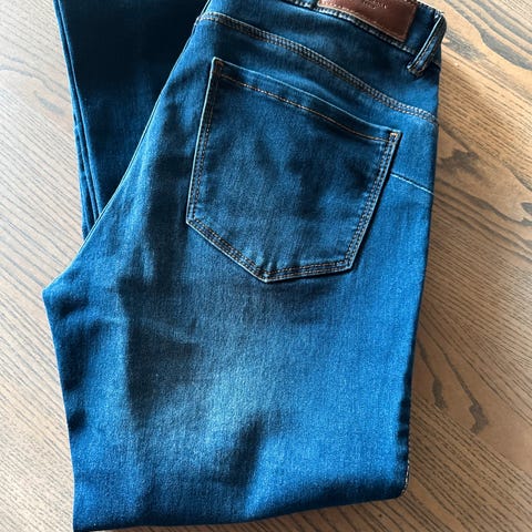 Blå &Denim bukse Girlfriend Fit Regular Waist størrelse 25. buksen er en klassisk Model ferdig med hull. Pent brukt. Hullene er laget ved produksjon. Kan sendes mot at kjøper betaler porto.
