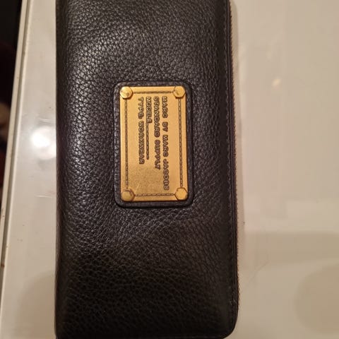 Små riper, normal slitasje. Se på bilder. Mye plass til både kort og kontant. Ekte skinn.