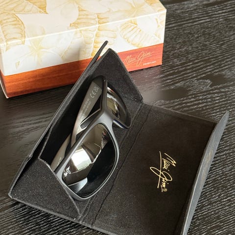 Vurderer å selge Maui Jim sin The Treble-solbrille prydet med Manchester United detaljer. Kom gjerne med bud.
