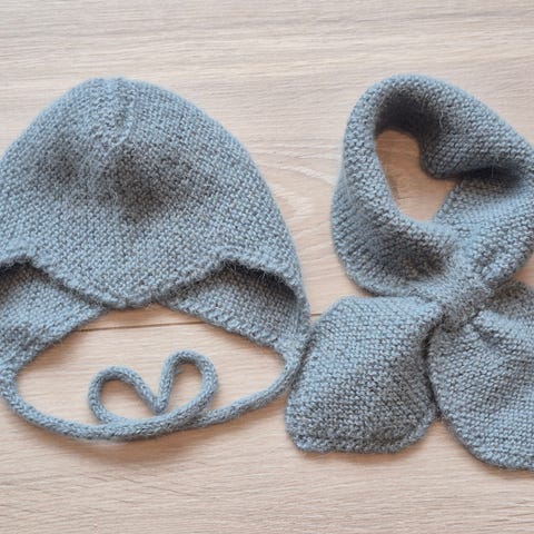 Lys grå str 3-6 mnd strikket i Sandnes garn Kos.