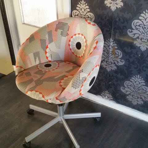 Lilla lenestol med fotskammel selges. Veldig myk og behagelig å sitte i, med to puter