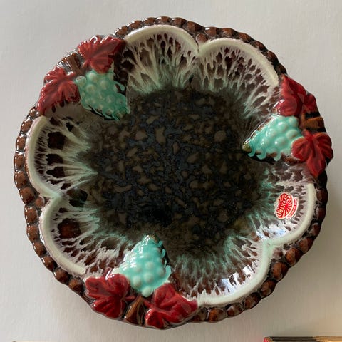 Kult fat, sannsynligvis fra 50-tallet. Svart med hvite prikker.