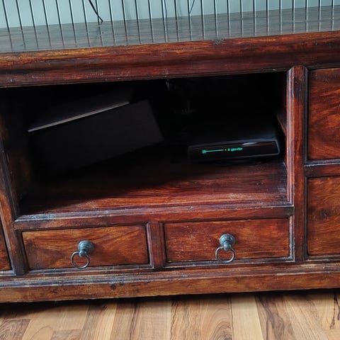 Nydelig skap/tv-konsoll i 100% massiv teak med messingdeler.